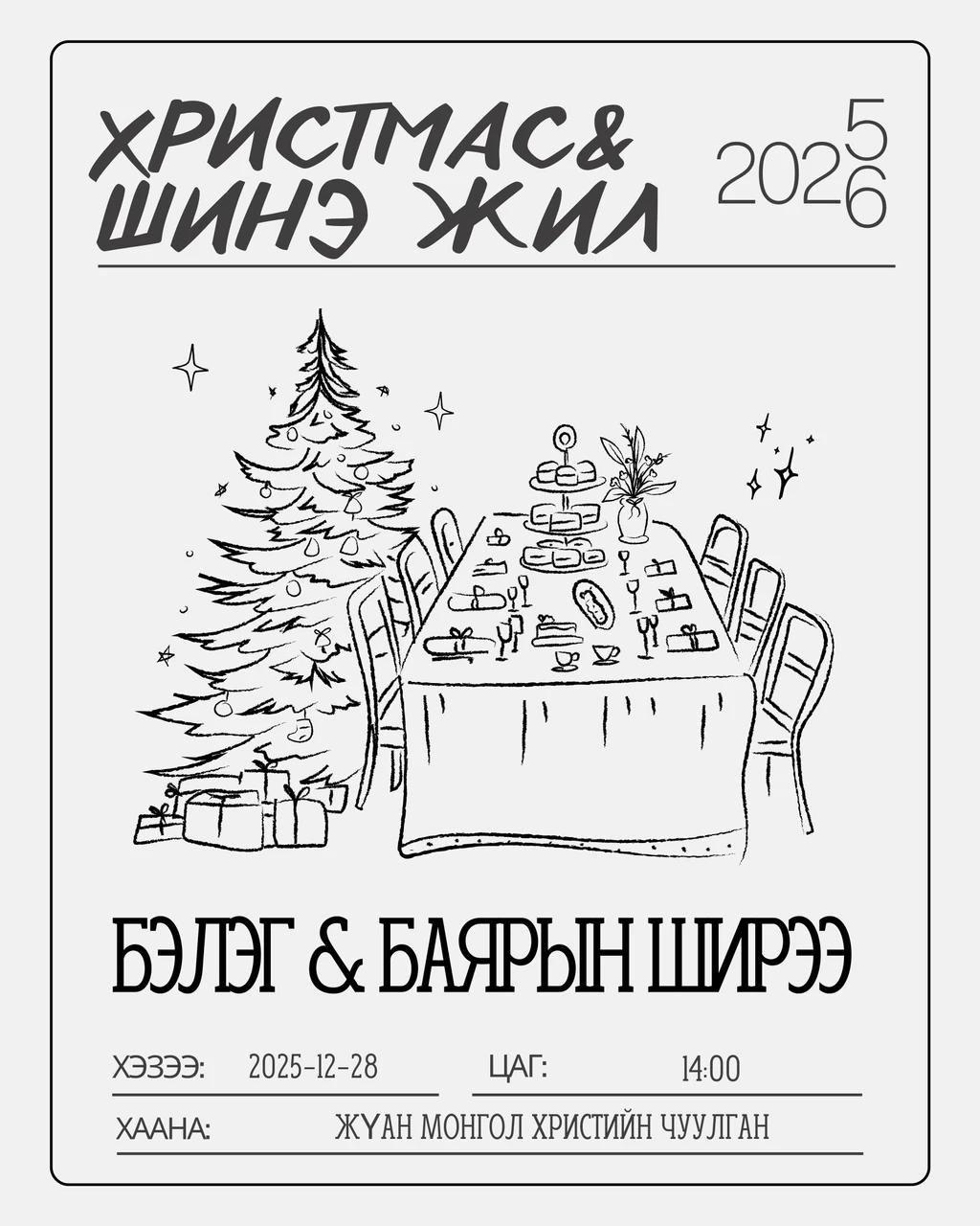 ХРИСТМАС + ШИНЭ ЖИЛИЙН ОНЦГОЙ БАЯРЫН ЦУГЛААН БЭЛЭГ БОЛОН ӨӨРИЙН ГАРЫН ЗУУШ САЛАТ, АМТТАН БЭЛТГЭЖ ОРОЛЦОЖ ҮЙЛЧИЛЖ БУЙ ИТГЭЛИЙН АХ ДҮҮС БҮГДЭД ТАЛАРХАЖ БАЙНА. ТА БҮГДИЙН САВЫГ БУРХАН ХАЛЬЖ ЦАЛГИХААР ДҮҮРГЭЖ ЕРӨӨХ НЬ МЭДЭЭЖ ЮМАА. ЭЗЭНД АЛДАР НЬ БАЙХ БОЛТУГАЙ. ТОРТ ХИЙГЭЭД АВЧ ИРЭХ Эрдэнэ Булган Дорлигсүрэн Болортуяа ГЭР БҮЛ, НИЙСЛЭЛ САЛАТ ХИЙЖ ИРЭХ БАТ-ЭРДЭНЭ, МӨН НИЙСЛЭЛ САЛАТ ХИЙЖ ИРЭХ Naraa Narantuya, БАЙЦААН САЛАТ Battseren Namdag, СҮҮТЭЙ ХИЙЦТЭЙ ЦАЙ Galya Galya, АЛАГ БУЮУ ДУНАЙСКИЙ САЛАТ ШҮРЭНЦЭЦЭГ, БЯЦХАН ХҮҮХДҮҮДЭД БЭЛЭГ БЭЛДСЭН Ундрам Ундрам, ХҮРЭН МАНЖИН ЛУУВАНГИЙН САЛАТ Altan Tsooj+Chimge Hiel НАРТ ТАЛАРХАЖ БАЙНА. ЖИЧ: ДЭЭРХ ХҮМҮҮС БАГА ХЭМЖЭЭГЭЭР БЭЛТГЭХИЙГ АНХААРНА УУ.